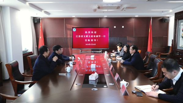 1月10日下午,江苏省文学艺术界联合会主席章剑华一行到新蒲京官网调研交流。校党委书记周南平,党委常委,宣传部部长周春燕,人文社科处处长孟庆良,对外合作处处长王荣,马克思主义学院副院长阚为,人文社科学院副院长郭炳南参加交流座谈会。