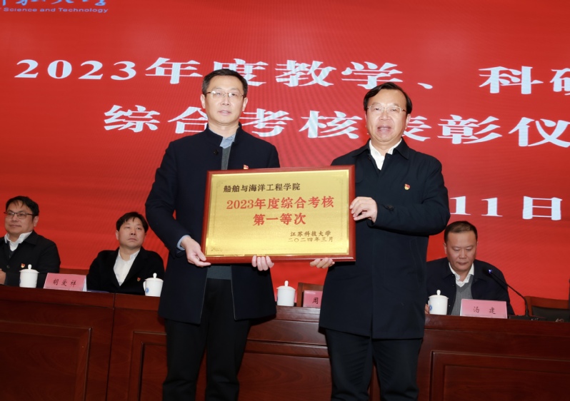 校党委常委、副校长潘锦全宣读了《关于公布2023年度教学科研单位考核结果的通知》,船舶与海洋工程学院、机械工程学院、经济管理学院荣获综合考核第一等次。